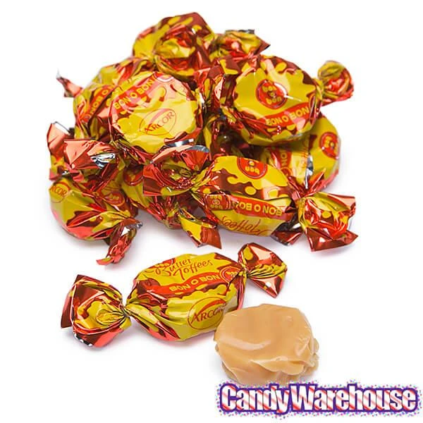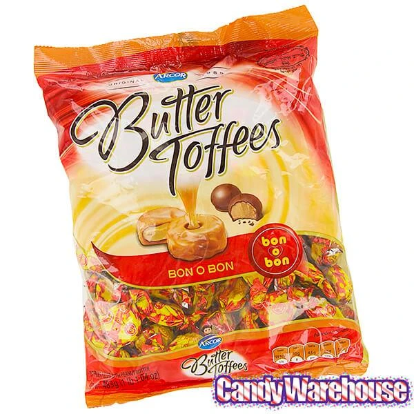Bag contains 1 pound of Arcor Bon o Bon Peanut Butter Filled Butter Toffees Candy… that’s about 65 pieces.