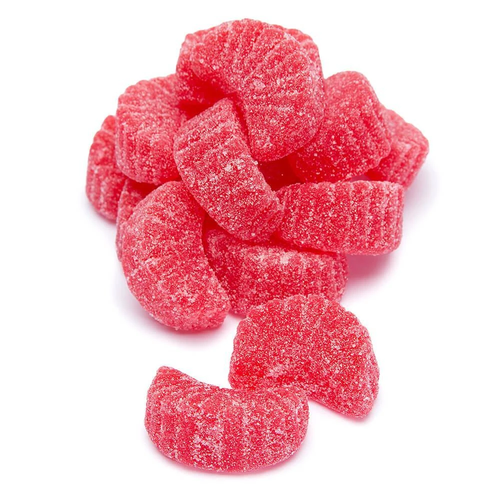 Bag contains 5 pounds of Cherry Slices Jelly Candy Wedges.