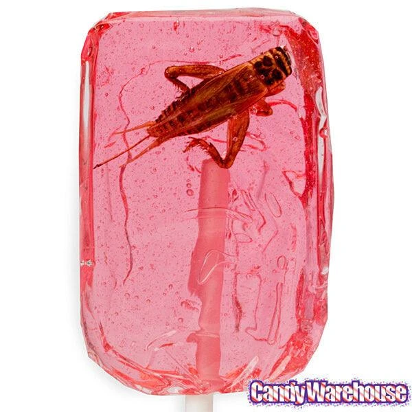 Sweet, colorful, sugar-free lollipops with a real cricket in the center! Will you lick down to the cricket?