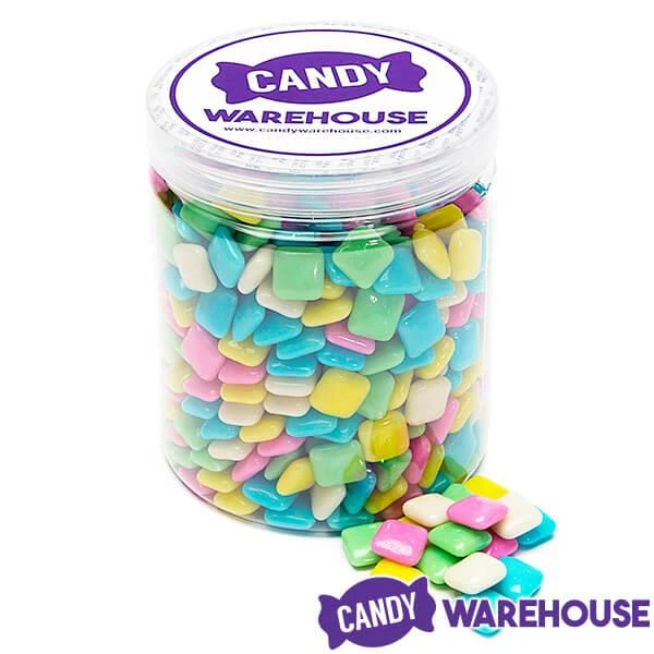 Jar contains 1.5 pounds of Dubble Bubble Polar Mint Chiclets Chewing Gum Tabs… that’s about 500 pieces.