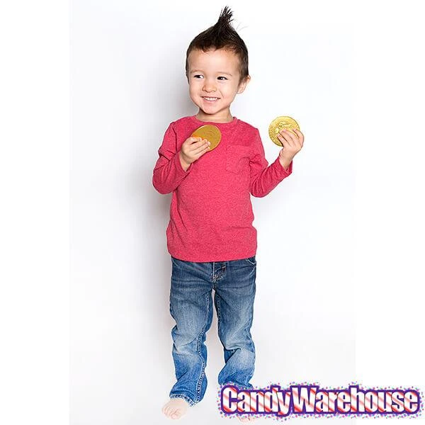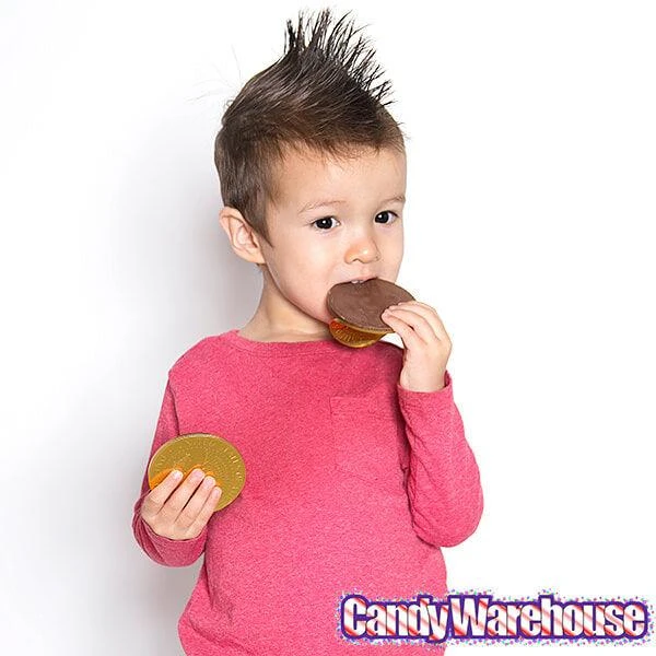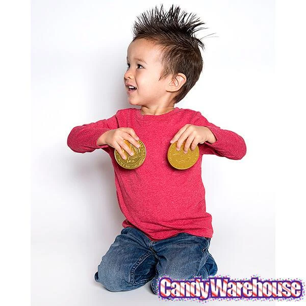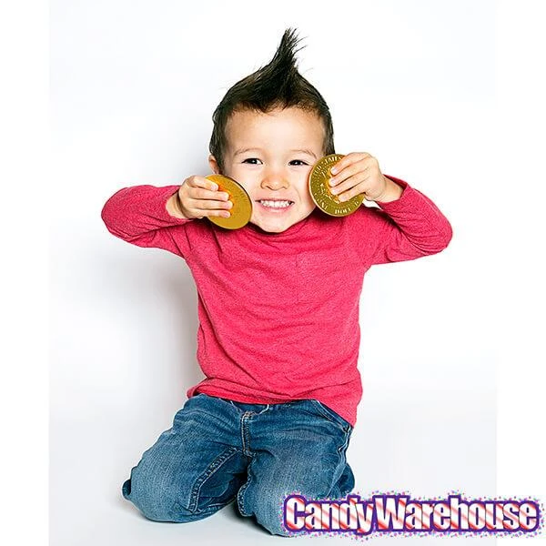 Don’t tell the United States Treasury Department. We may have broken into Fort Knox and made off with a bunch of their limited edition gold-plated dollar coins. Then again, we may have simply embossed thirty milk chocolate disks with intricate 3-D designs that look like real dollar coins, and then wrapped them in shiny gold foil to make an impression at your next party. You’ll have to try them for yourself to find out which is true. Basically, if you can take off the foil and bite into soft, creamy milk chocolate, then the Treasury Department has nothing to worry about.