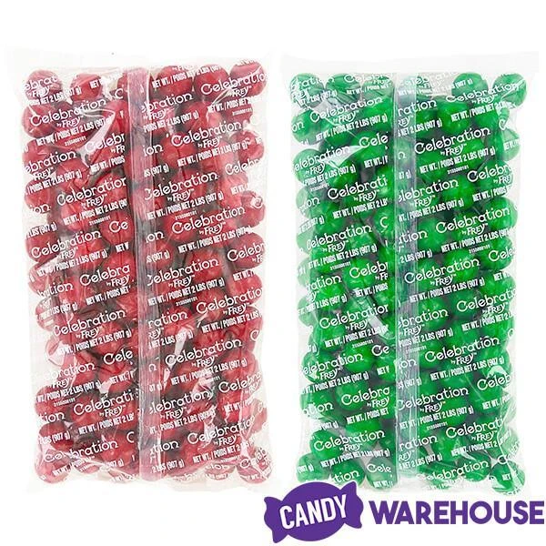 Box contains 4 pounds of Red and Green Gumballs Candy packed in 2 bags, each with a net weight of 2 pounds.