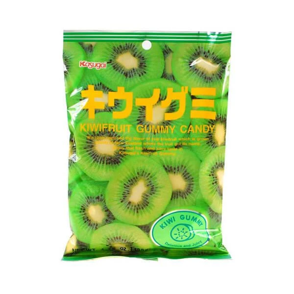 Bag contains 24 pieces of wrapped Kasugai Kiwi Gummy Candy.