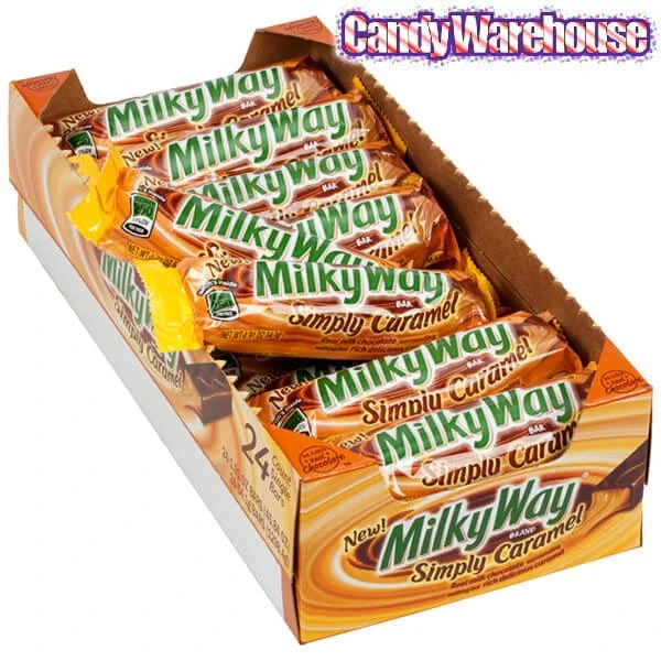 Display box contains 24 Milky Way Simply Caramel Candy Bars, each with a net weight of 1.91 ounces.
