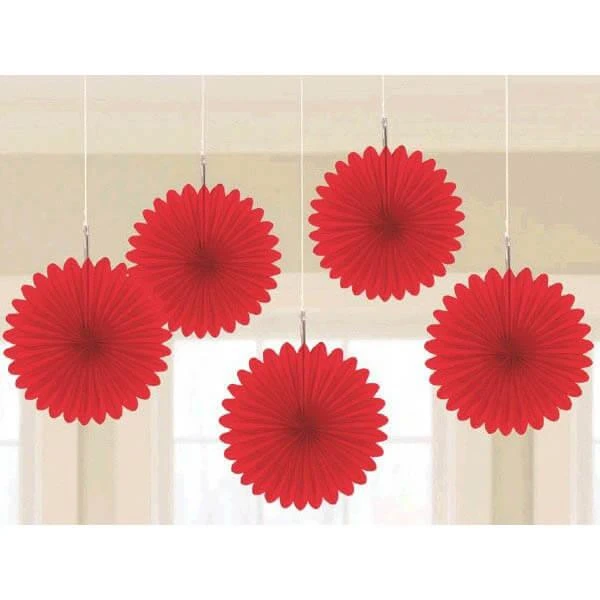 Pack contains 5 Apple Red Mini Hanging Fans.