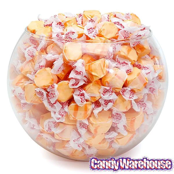 Bag contains 2.5 pounds of Gourmet Orange Salt Water Taffy Candy.