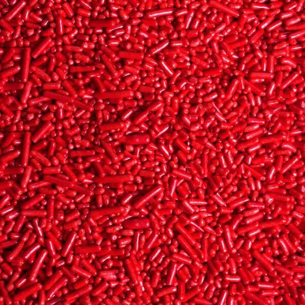 Jar contains 1.2 pounds of Red Sprinkles Candy.