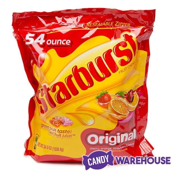Bag contains 3 pounds of Starburst Fruit Chews Candy.