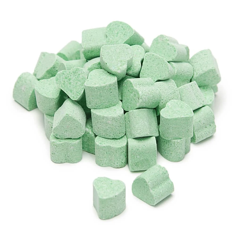 Petite in size but large on adorableness, these cute candy hearts in pastel green are perfect for filling gift tins and containers for weddings and other special occasions! Crafted from compressed sugar, each tiny heart packs a subtlety sweet flavor sure to surprise and delight!